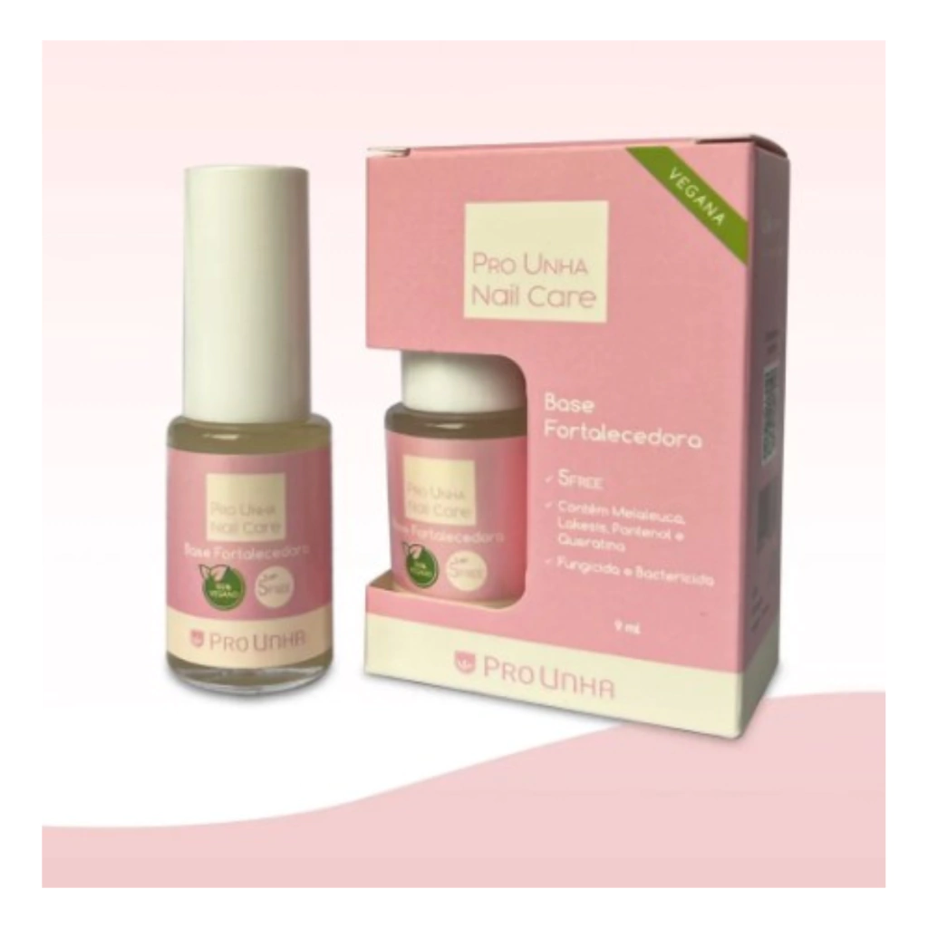 A Base Nail Care 9ml da Pro Unha é uma base fortalecedora vegana com propriedades fungicida e bactericida, desenvolvida especialmente para promover a saúde e o fortalecimento das unhas. Com ativos especiais e selecionados, ela forma uma fina película de alta resistência e proteção, garantindo unhas mais fortes e saudáveis.