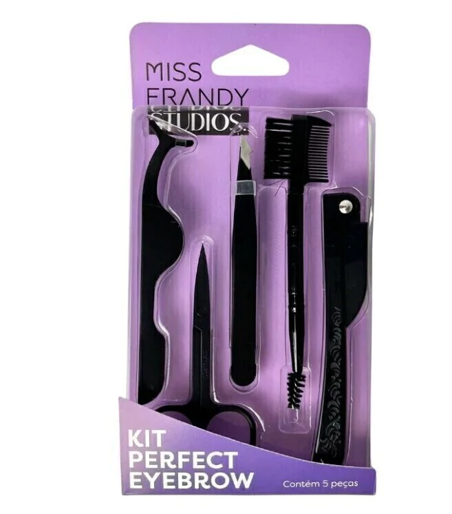 O Kit para Sobrancelha Perfect Eyebrow da Miss Frandy é um conjunto completo de acessórios projetados para facilitar a manutenção e o cuidado das suas sobrancelhas de forma rápida e fácil.