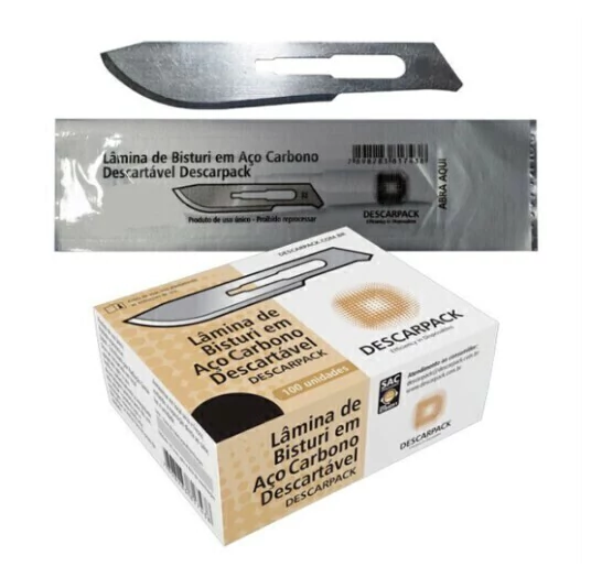 Lâmina de bisturi em aço carbono descartável com 100 unidades DESCAPACK.