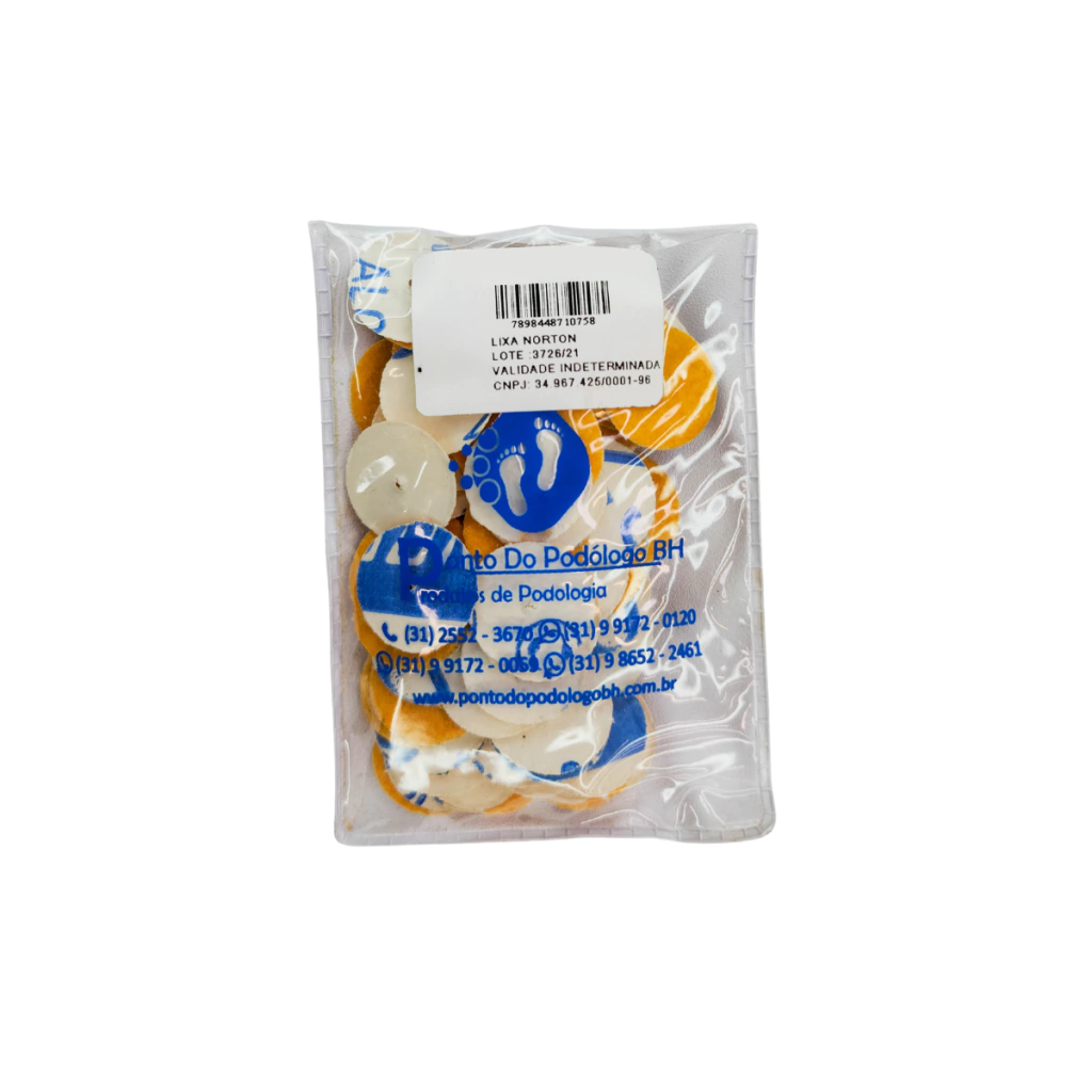 As lixas comercializadas pela Podomel, possuem o diferencial de ter grande qualidade e resistência. Na maioria dos casos, e escolha da grana* correta, ela permite, com apenas um disco plantar, fazer o procedimento nos 10 dedos sem soltar o abrasivo.