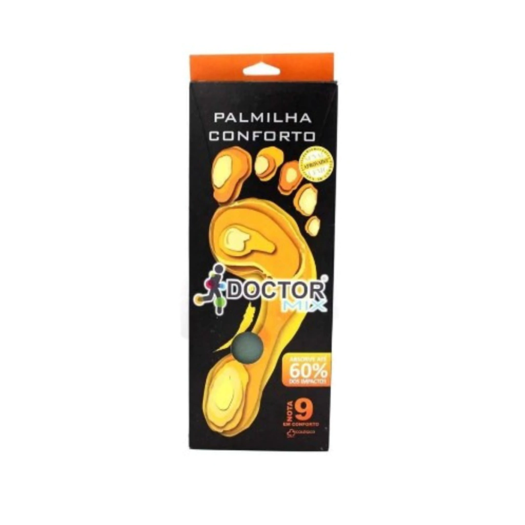 Absorve impacto em toda planta do pé e calcanhar até 60%. Proporciona descanso nos pés e pernas, Possui memória fazendo com que não haja deformação tendo assim conforto constantemente. Formato anatômico para melhor acomodação e conforto do usuário, Apoio anatômico do arco plantar para descanso dos pés durante o repouso. Declive de perfil para melhor impulsão ao caminhar, Sulcos para ventilação, Perfeito ajuste ao seu pé, Não utiliza nenhuma forma de adesivo.