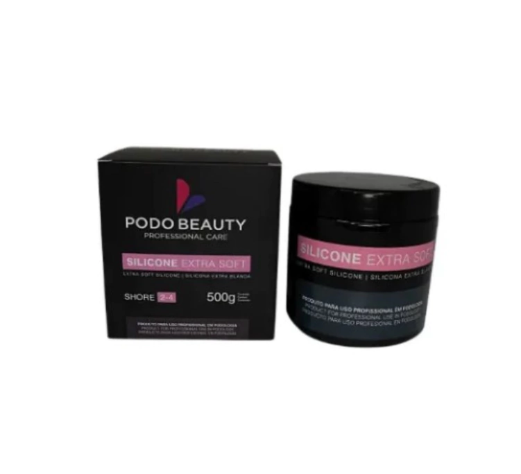 O SILICONE PODO BEAUTY é um produto de silicone de condensação especialmente desenvolvido para a fabricação de órteses siliconadas utilizadas em práticas podológicas. Disponível em diversas apresentações, incluindo EXTRA SOFT (shore 2-4), SOFT (shore 12-15), MEDIUM (shore 25-26), com opções de embalagens de 250g ou 500g. O produto inclui o CATALISADOR PARA SILICONES (Catalisador Universal).